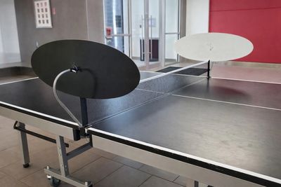 The Ricoshot system installs in minutes using a standard net-post format and is engineered for consistent rebound performance, durability, and ease of use in active play environments. It integrates naturally into existing table tennis settings while preserving the core feel of the game.